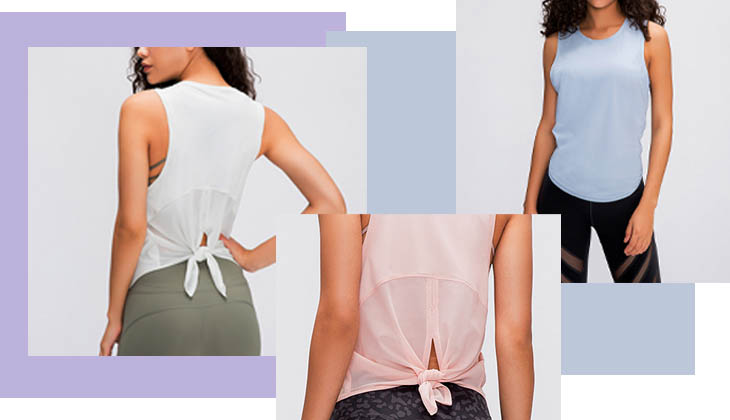 Ein Rückenriemen-Detail zeigt das Besondere im schlichten Tanktop. Es würde toll aussehen mit einer Yogahose oder Shorts und Ihren schönen aktiven Accessoires.