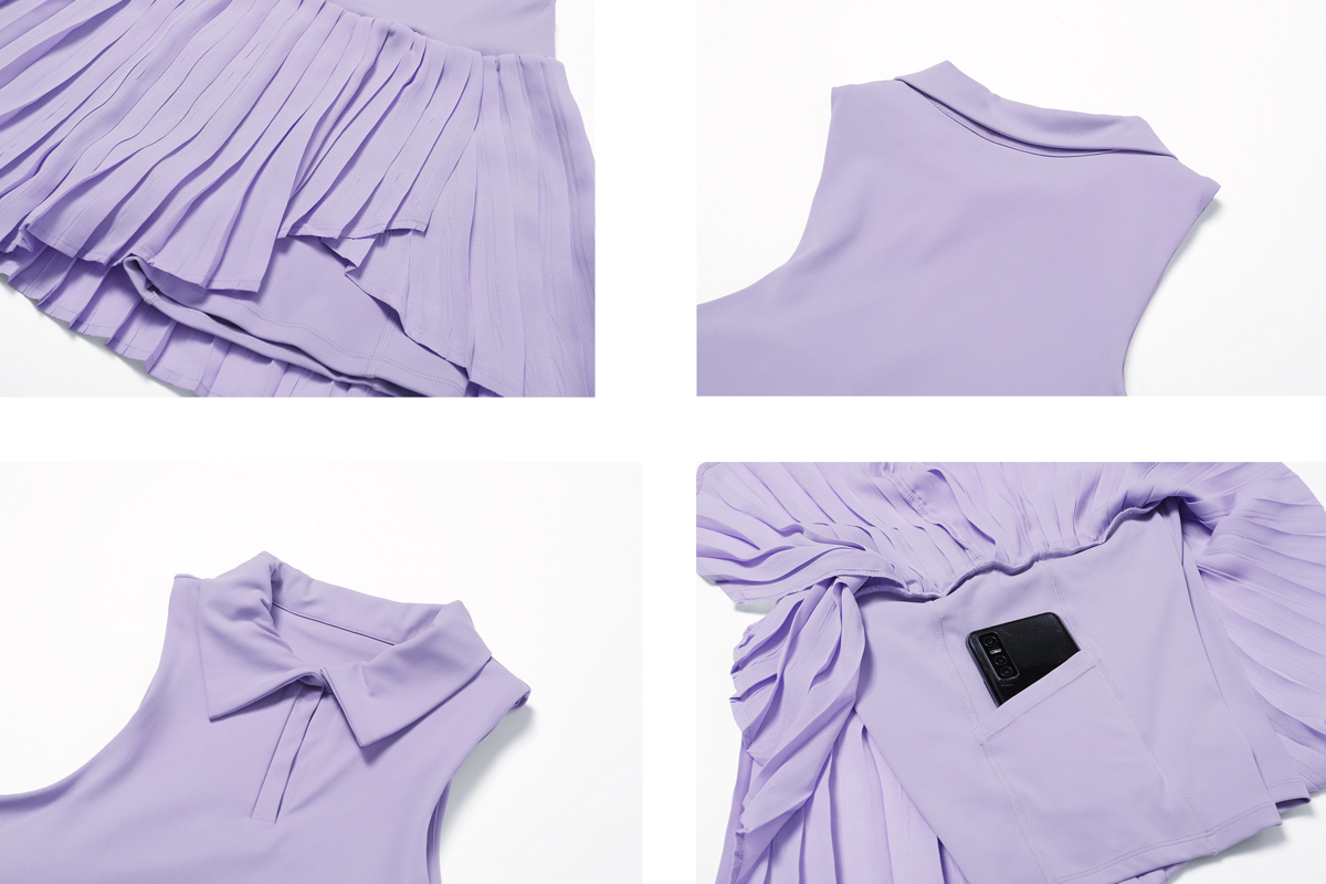 This pleated skort activewear set is thoughtfully designed with functional details that support an active lifestyle: