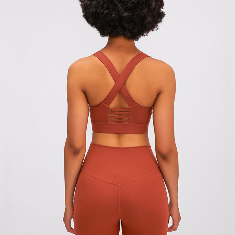 Hohe Wirkung. Mittlere Unterstützung. Abnehmbare Tassen. Kreuzriemen zurück. Hohe Abdeckung.