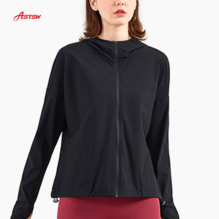 Training im Fitnessstudio? Unsere schnell trocknende Windjacke mit Kapuze und Reißverschluss sind sehr bequem und locker, Lässiger locker laufender Fitness-Yoga-Anzug, rutschfester Reißverschluss, winddichte Bündchen, verstellbarer Kordelzug, lockere Passform, Schnelltrocknende Nylonserie. Fertige Probe steht Ihnen zur Verfügung, um die Qualität und den Großhandelspreis zu überprüfen, die für Private Label angeboten werden.